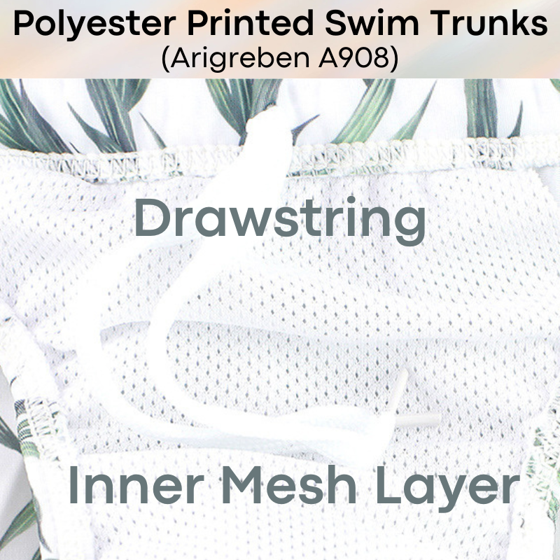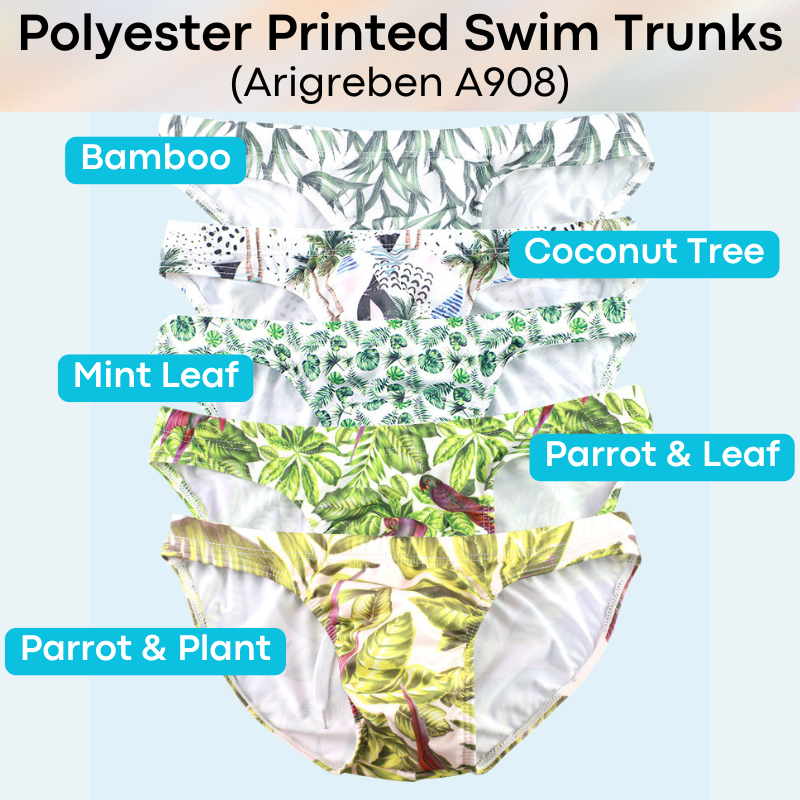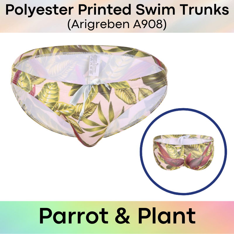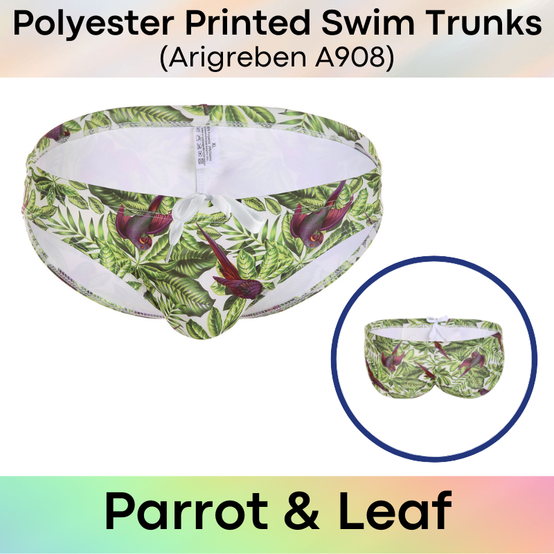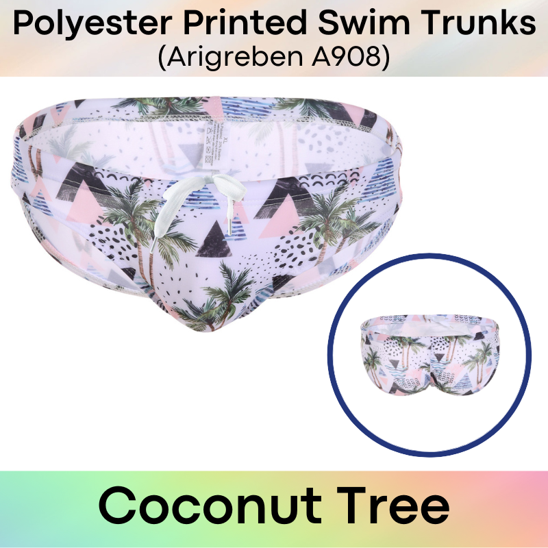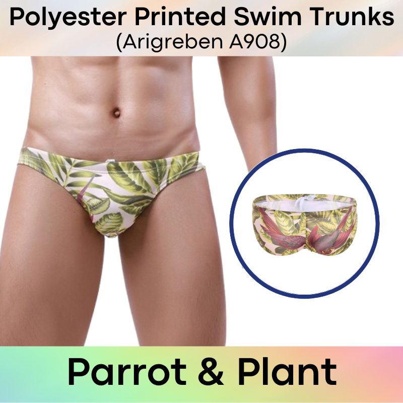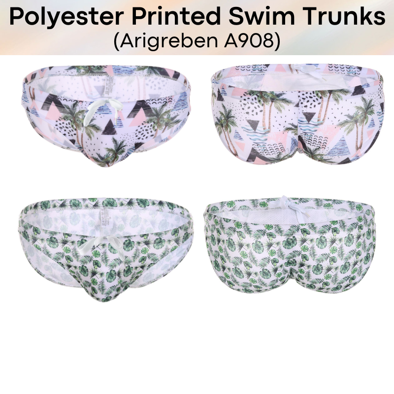 Made of polyester. Low rise swim trunks. Rear middle insewn line to accentuate your posterior. Drawstring for greater security.