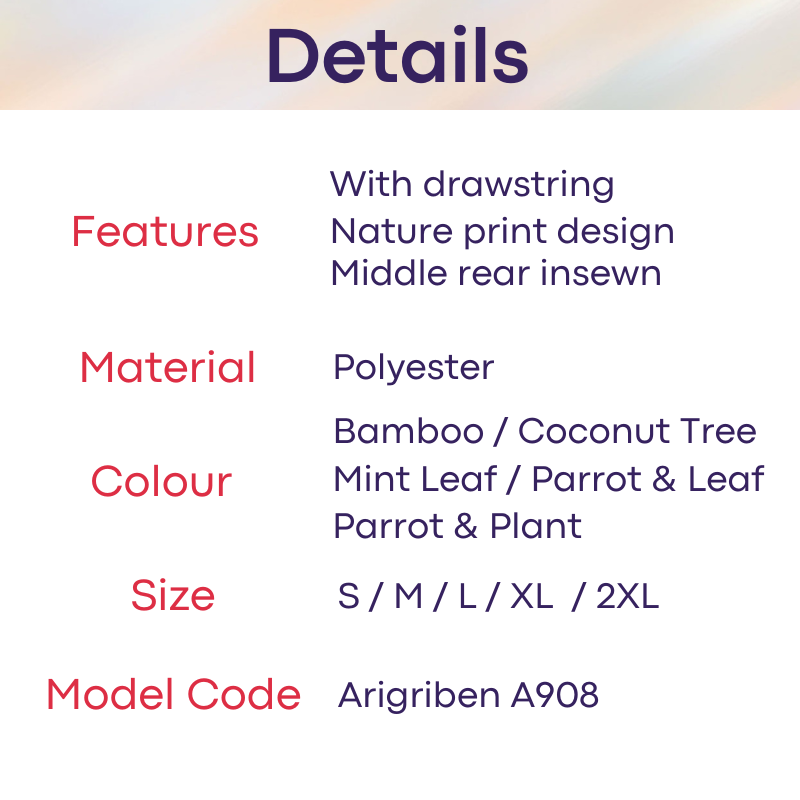 Available in Bamboo/Coconut Tree/Mint Leaf/Parrot & Leaf/Parrot & Plant.