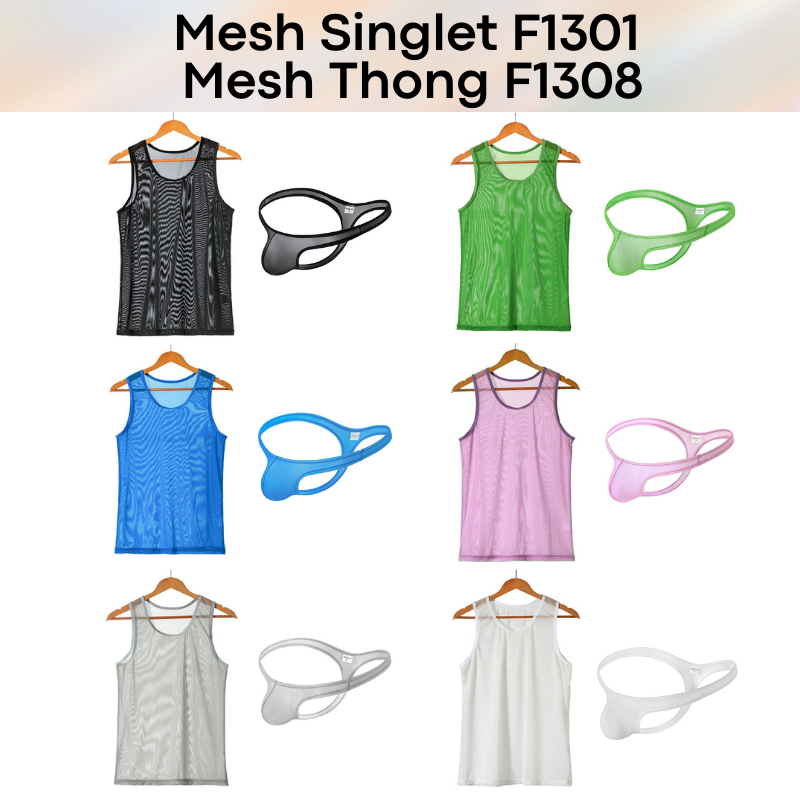 Made of polyester. Mesh see through, high breathability. Pairs well with Fankazi F1308 mesh thong series.