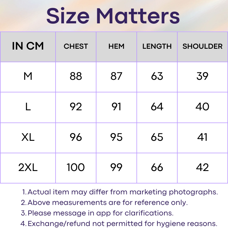 Please refer to seller' estimated measurements before placing order. There is no exchange/refund if sizing is wrong.