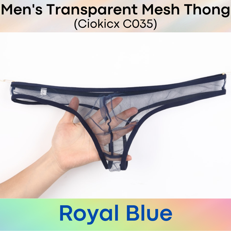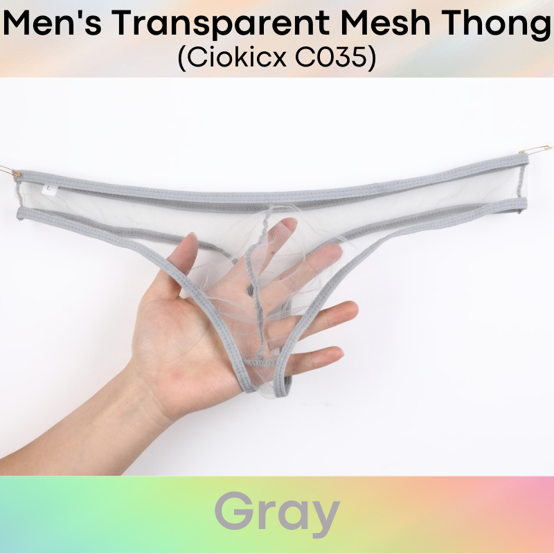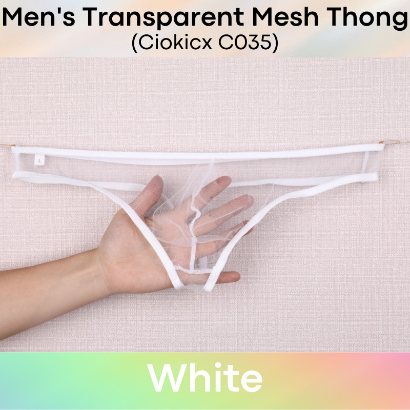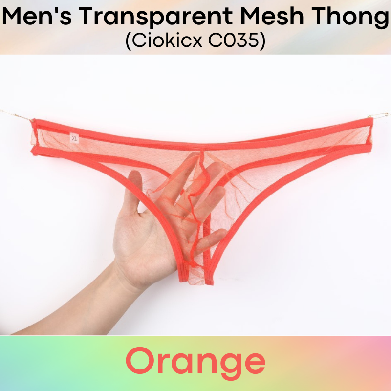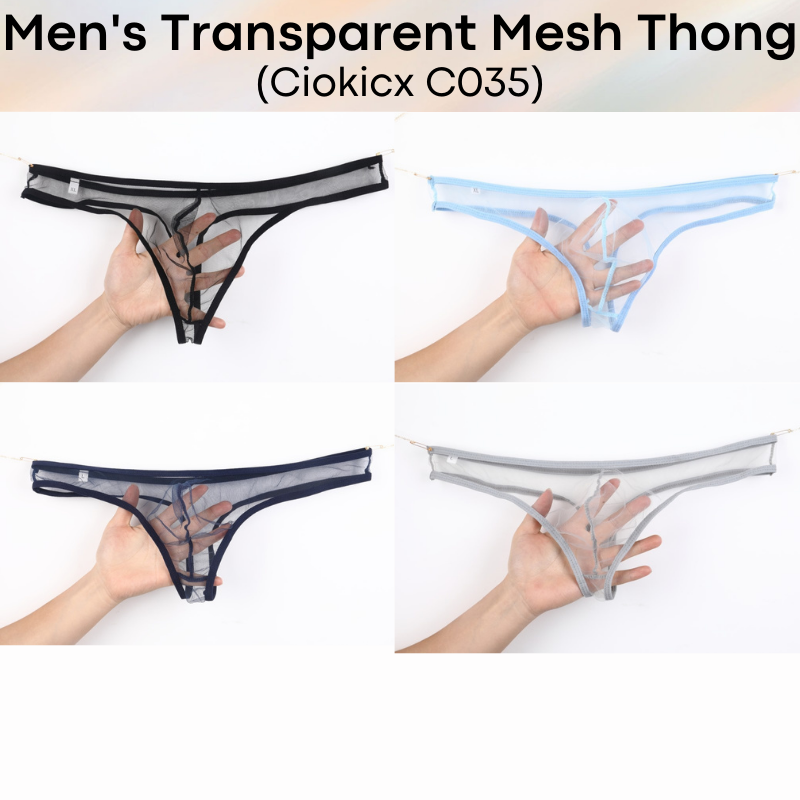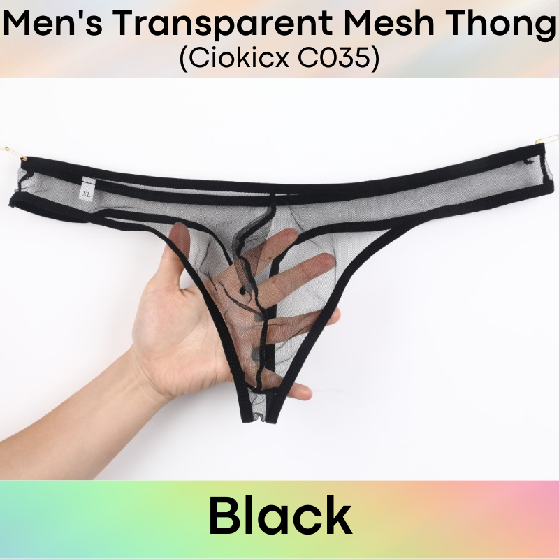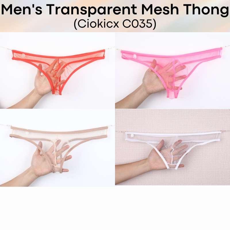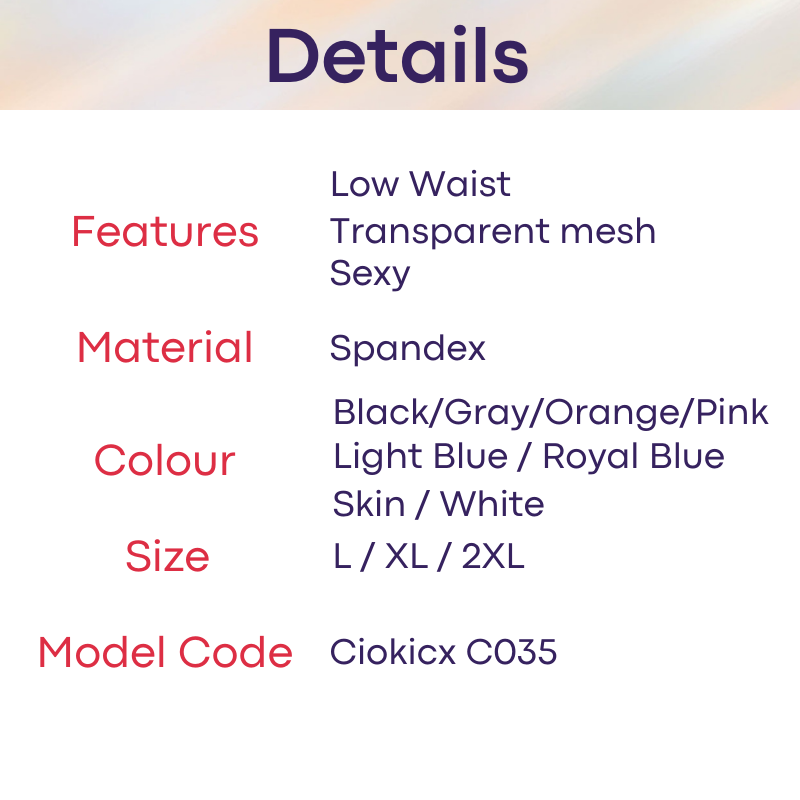 Made of spandex. Almost transparent low waist thong. Show off your package in your sexiest mood!