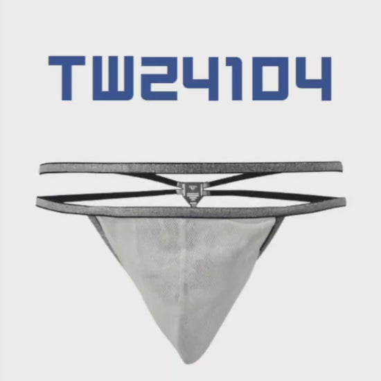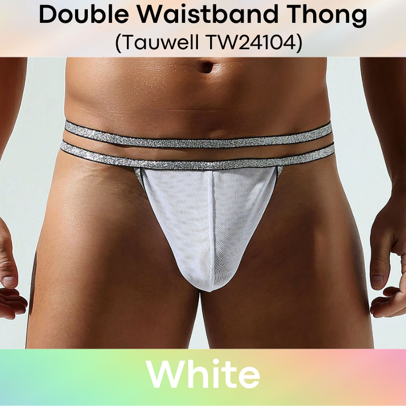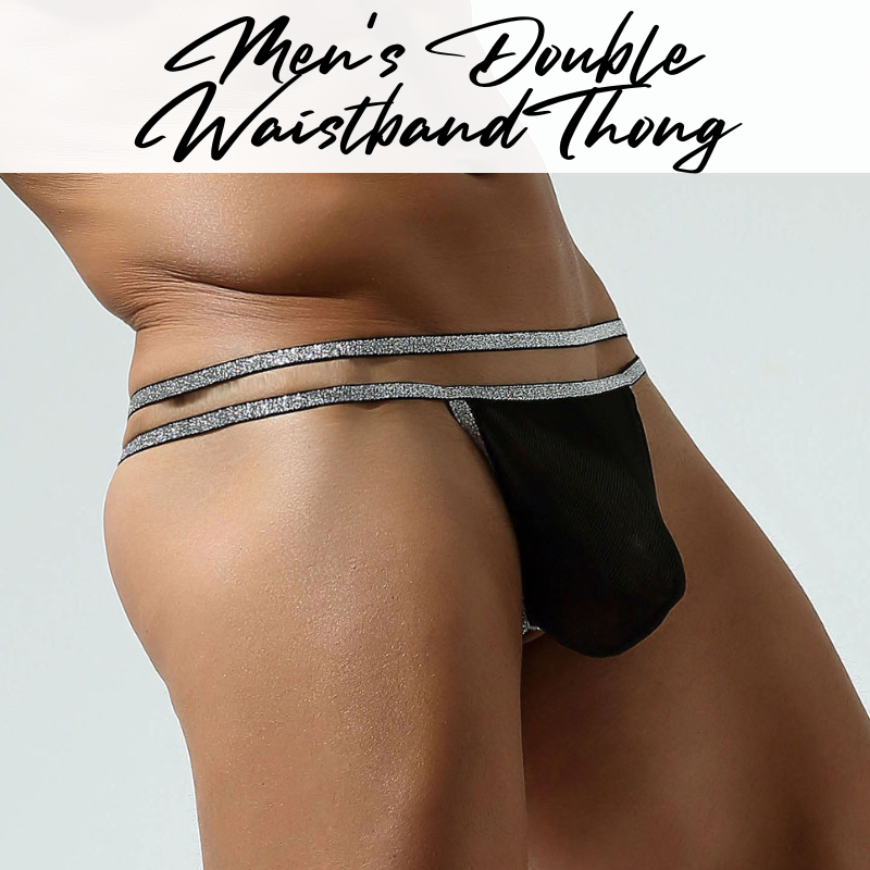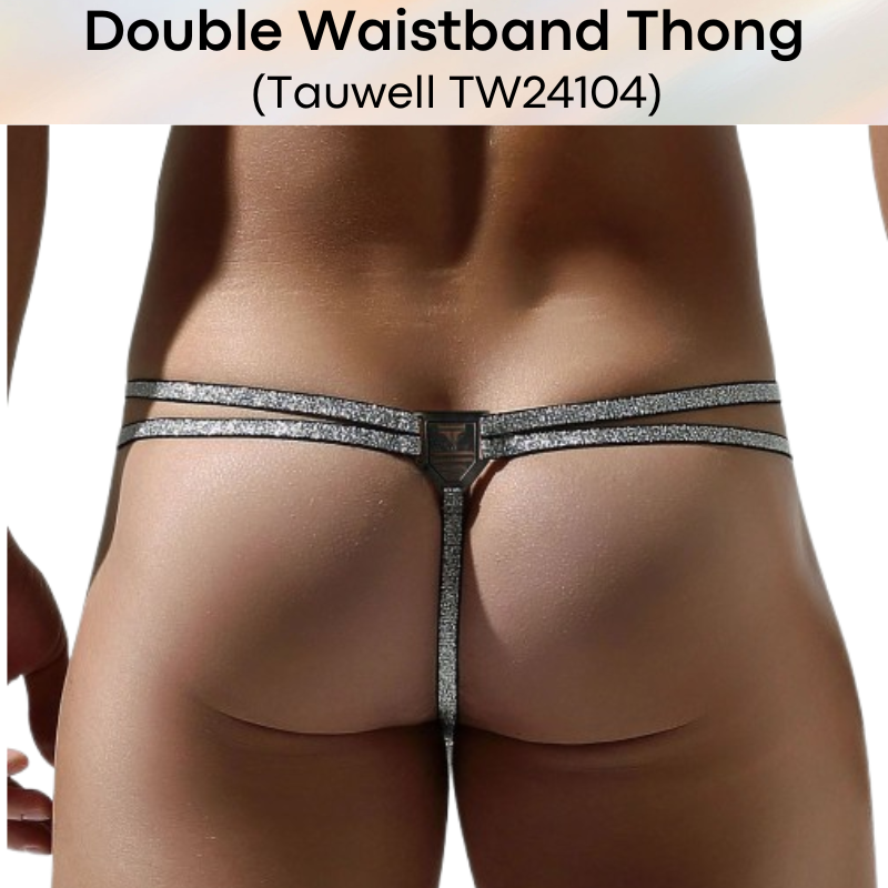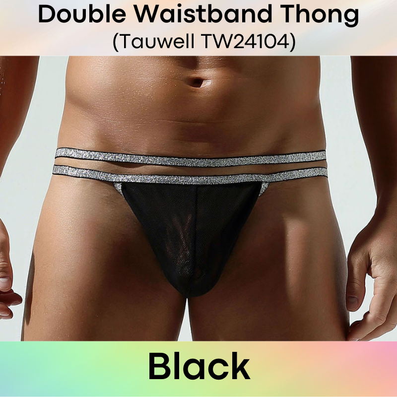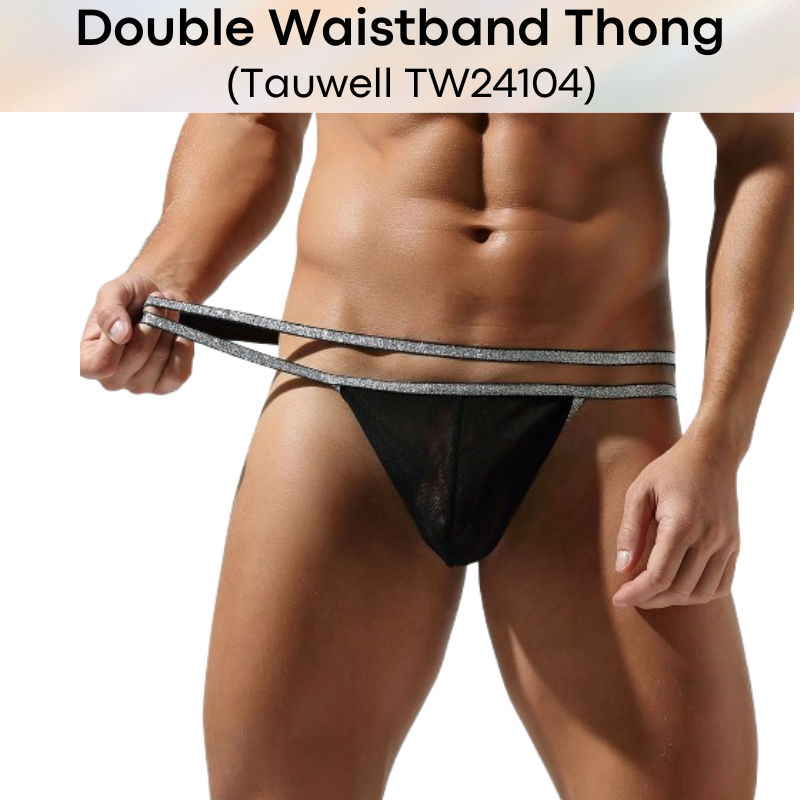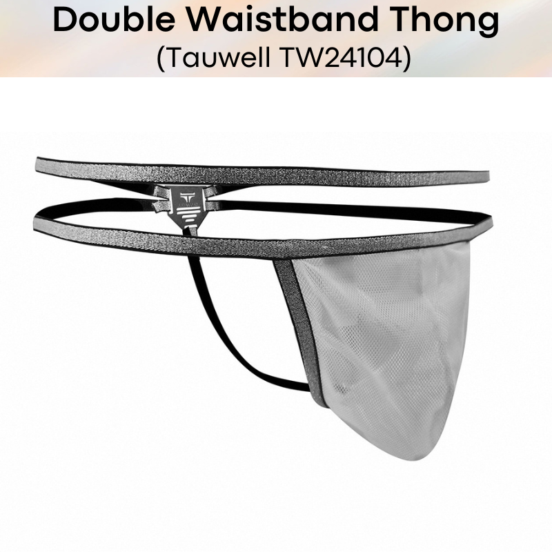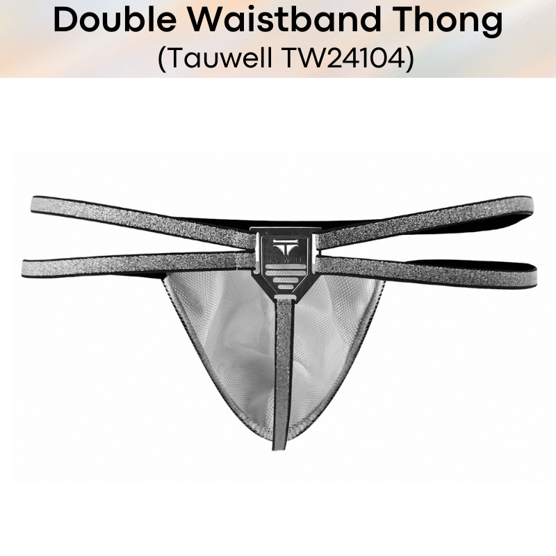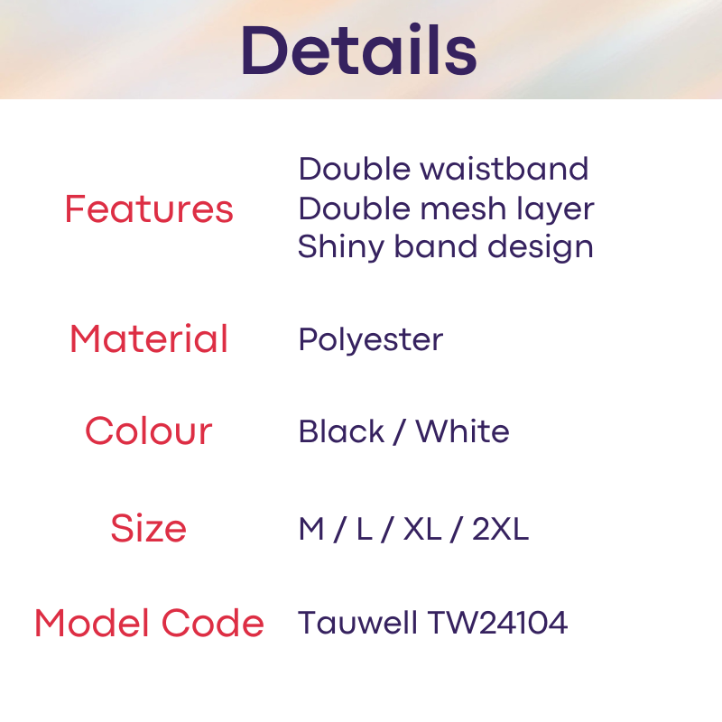Made of polyester. Double mesh layer pouch. Sexy double waistband, shiny design.
