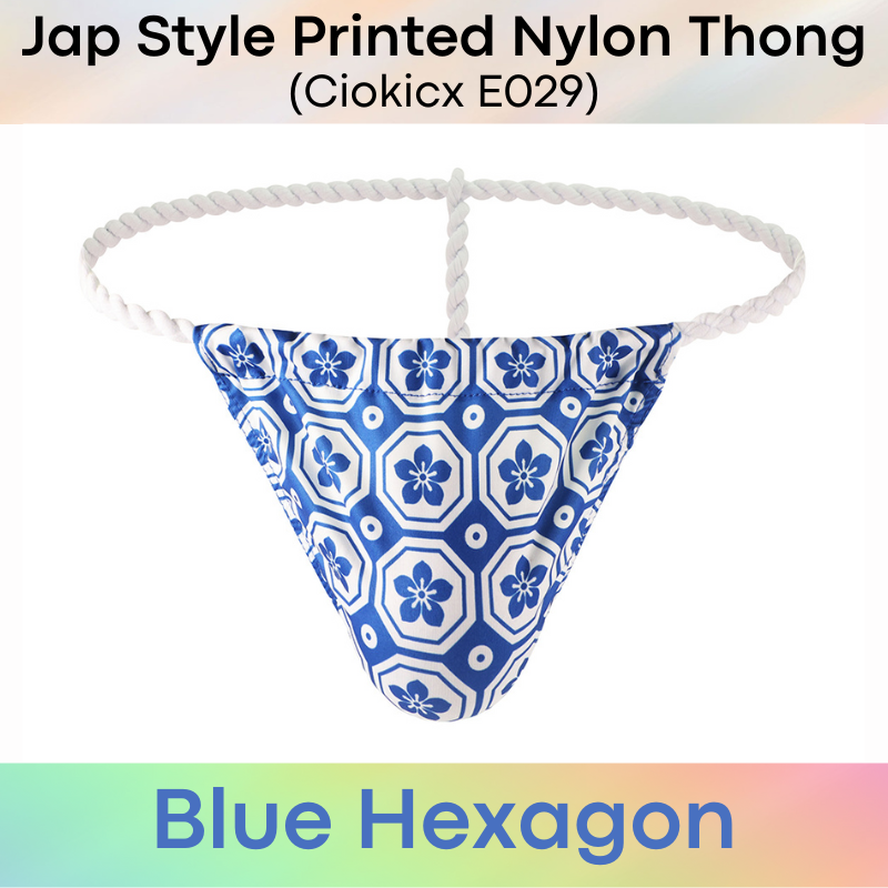 Made of nylon. Jap style, with 1cm rope waistband. 6 printed designs to choose from.