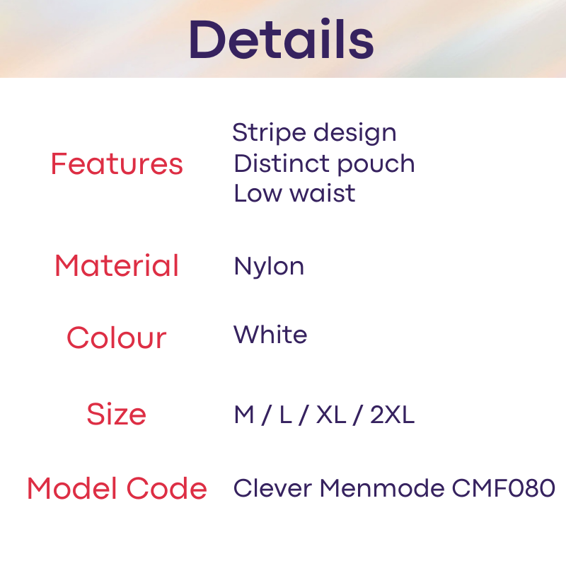 Made of nylon. Faint vertical stripe design. Distinct pouch great for big package. Soft material to the skin.