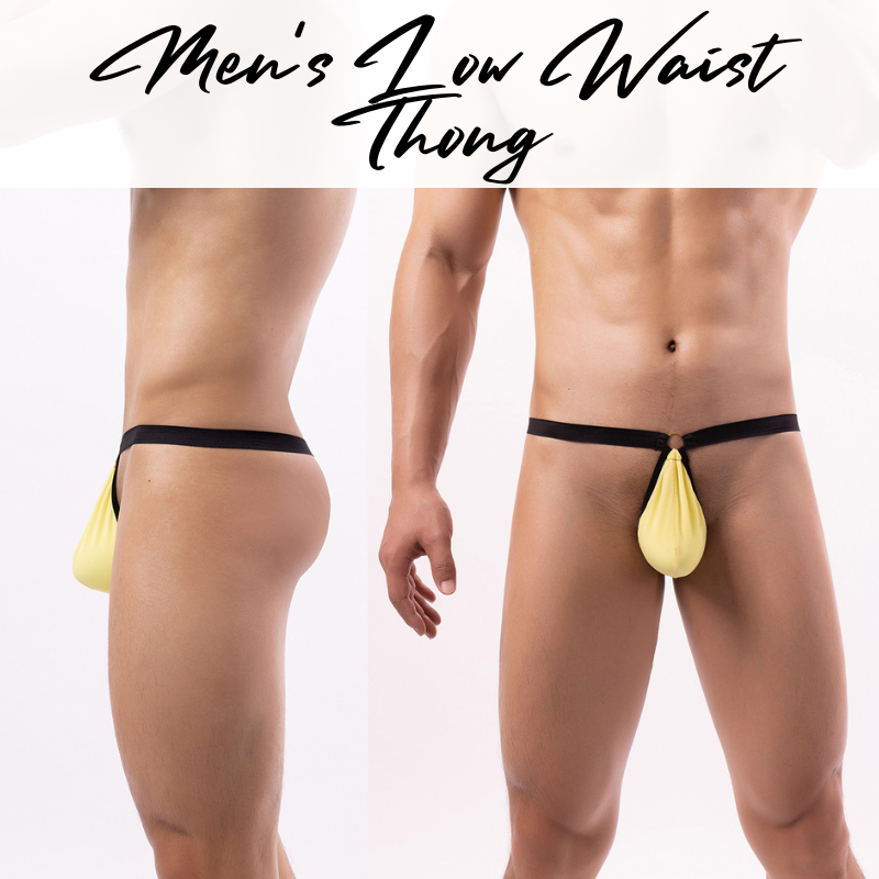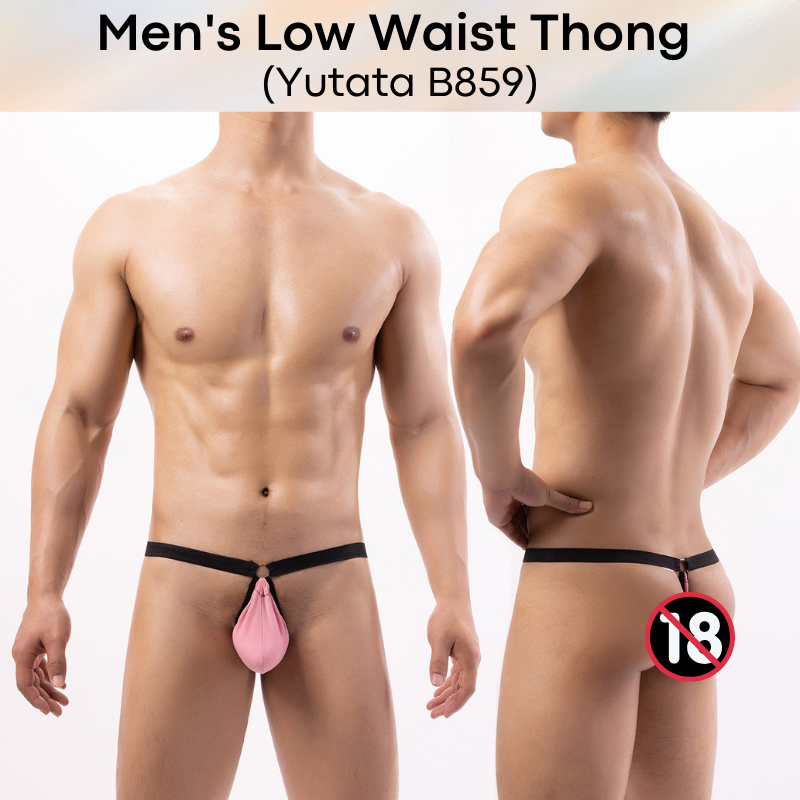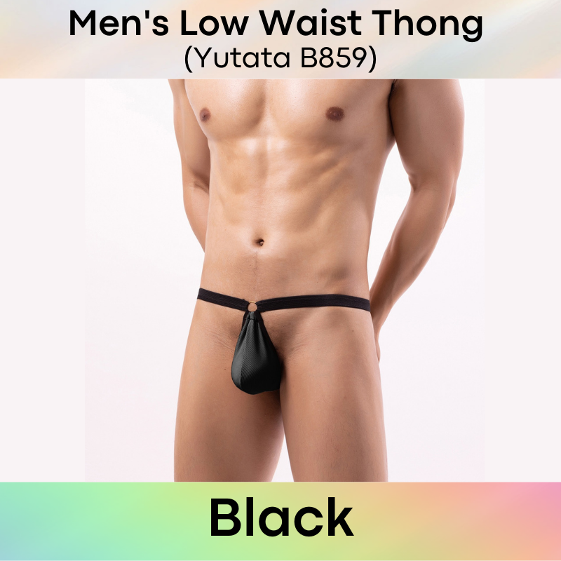 Made of polyester. Thong with large stretchable pouch. Metl ring front and back for kinky feel.
