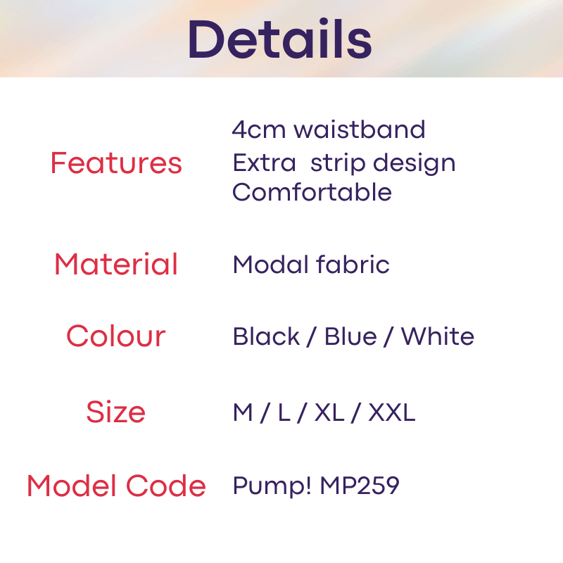 Made of modal fabric. Comfortable to wear. 4cm waistband.