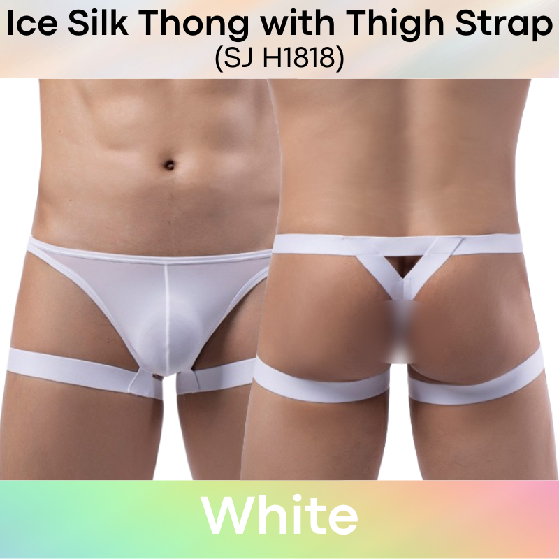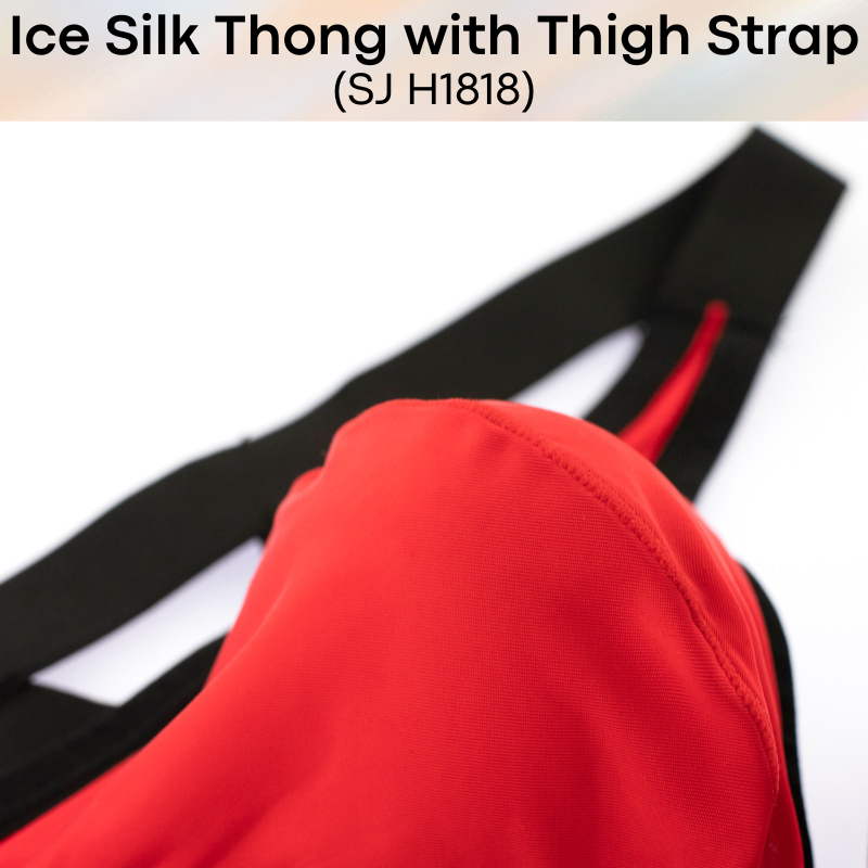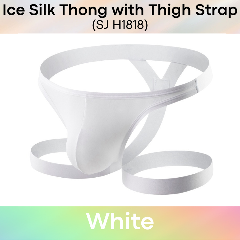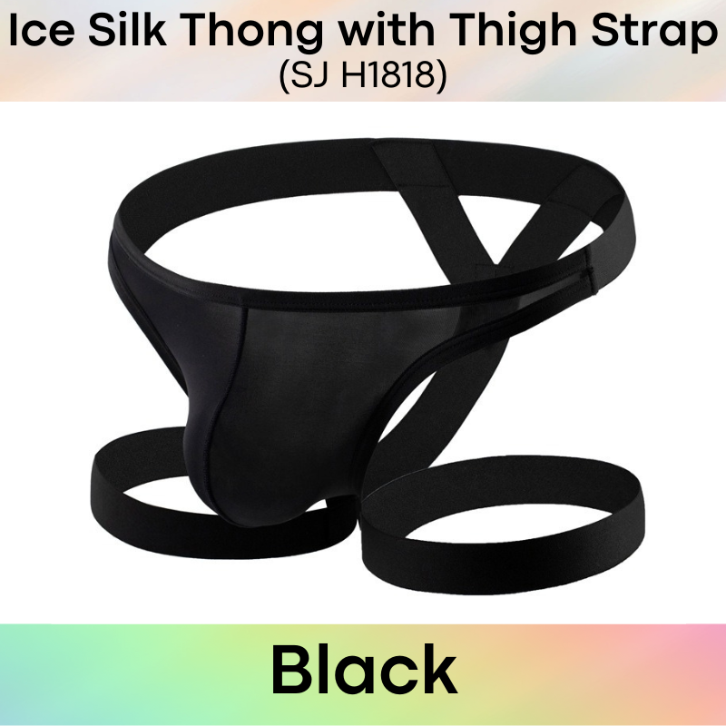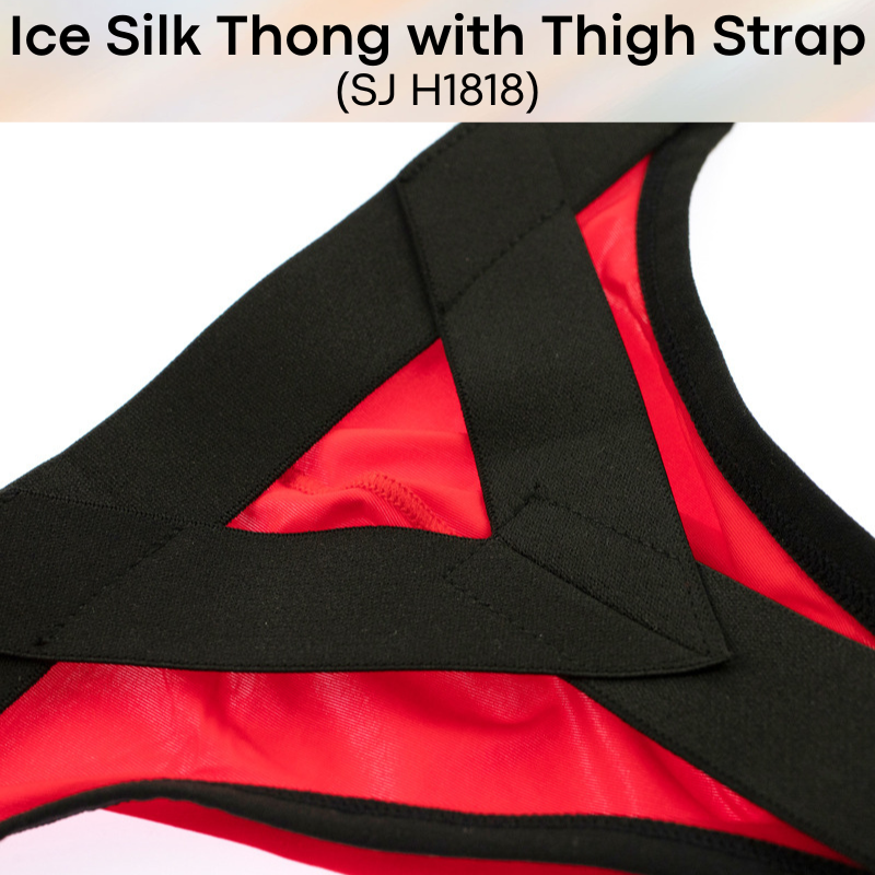 Made of nylon. Ice silk front pouch, ample space. 2.5cm strap. Comes with Y Thong strap and thigh straps.