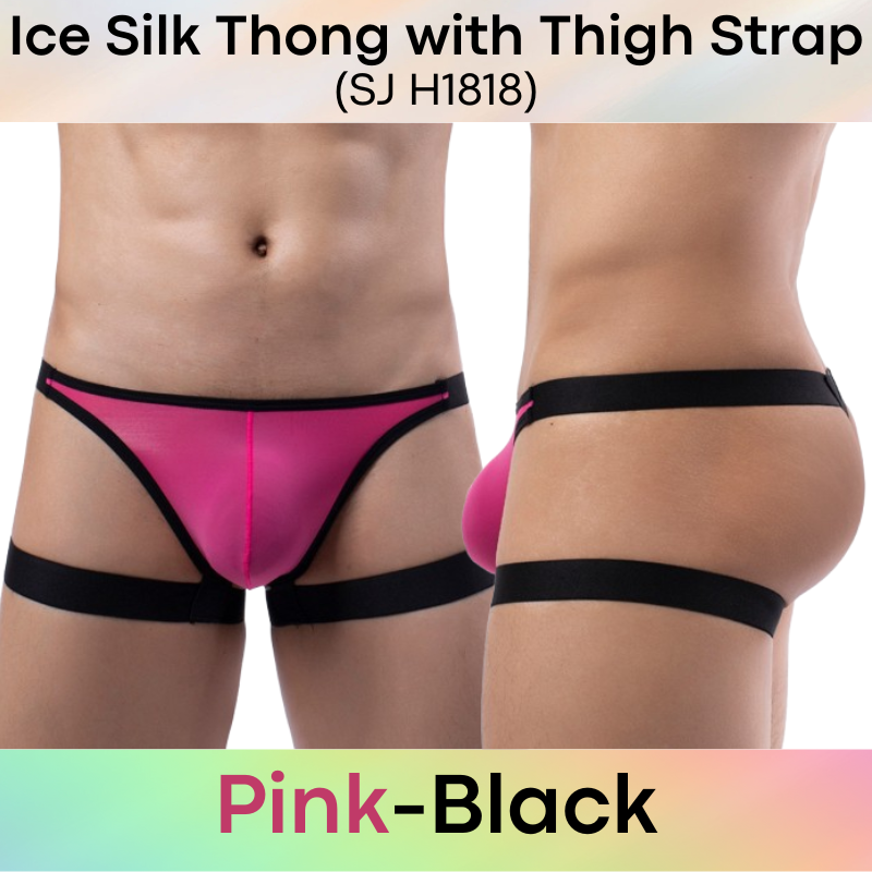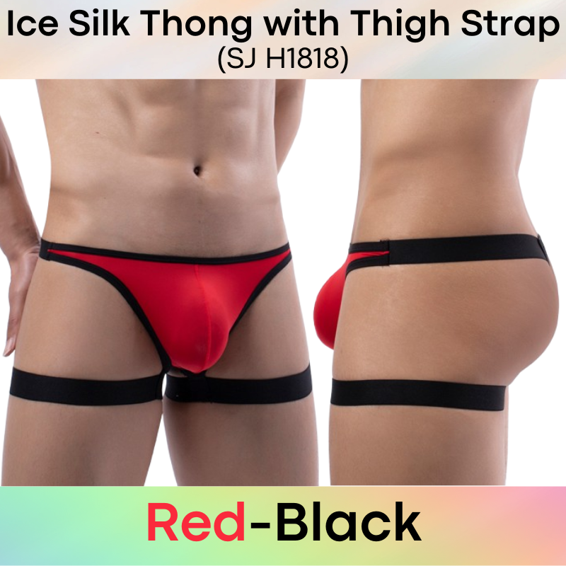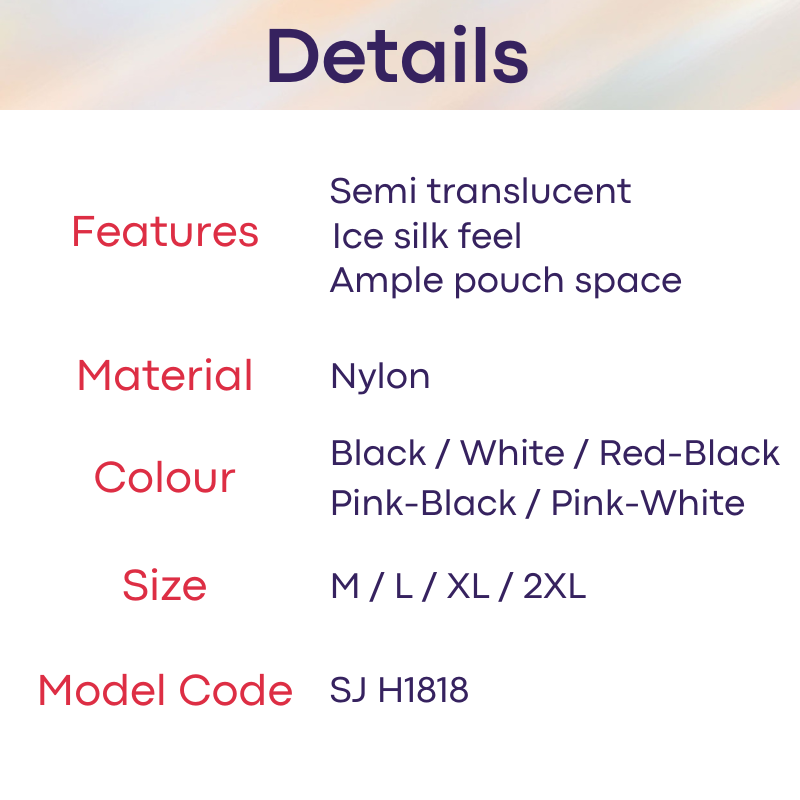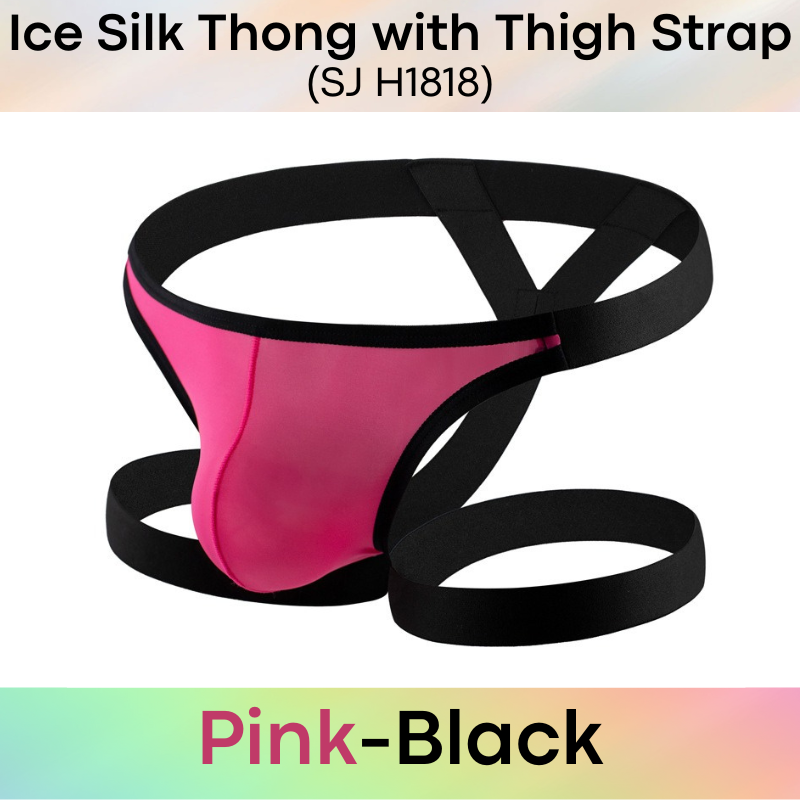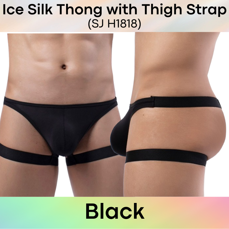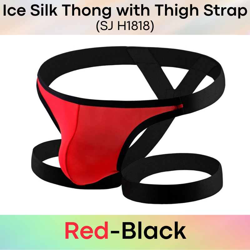 Made of nylon. Ice silk front pouch, ample space. 2.5cm strap. Comes with Y Thong strap and thigh straps.