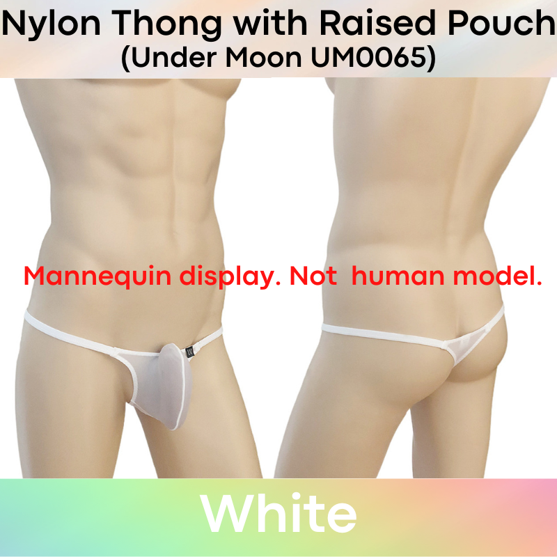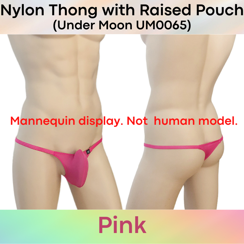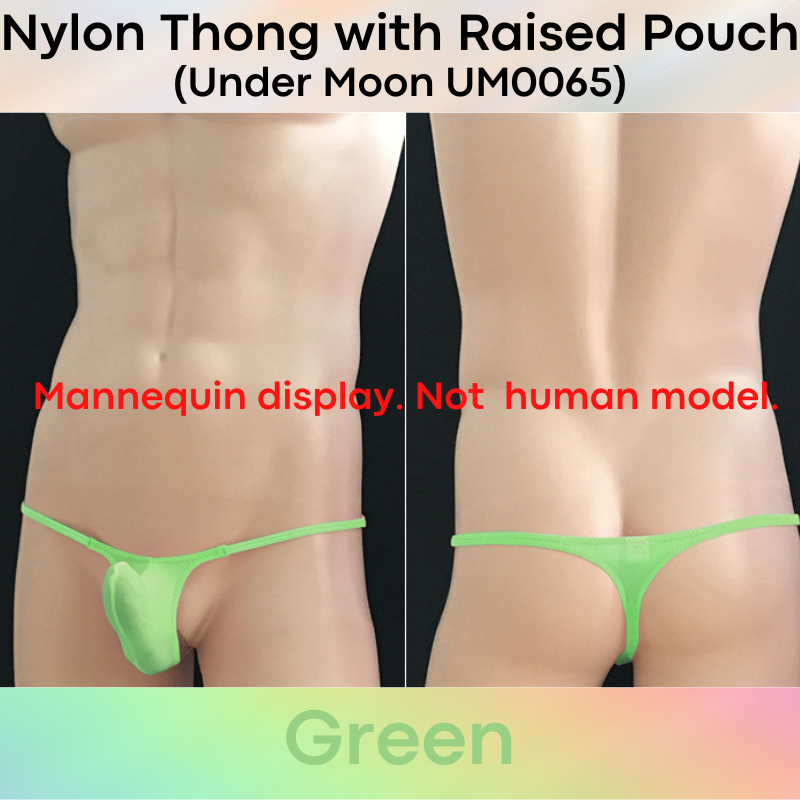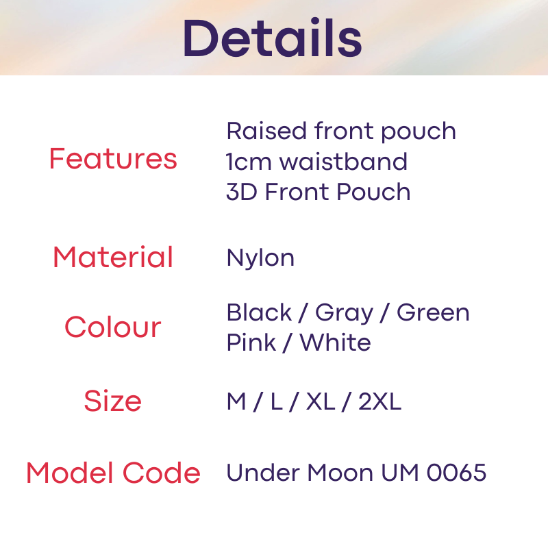 Made of nylon. 1cm string band. Raised front pouch, 3D pouch to show off your assets.