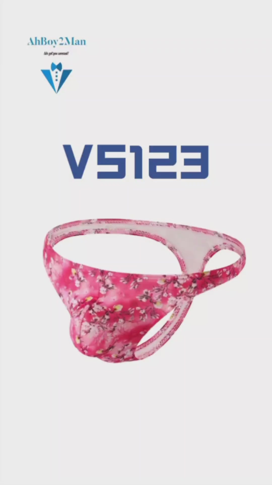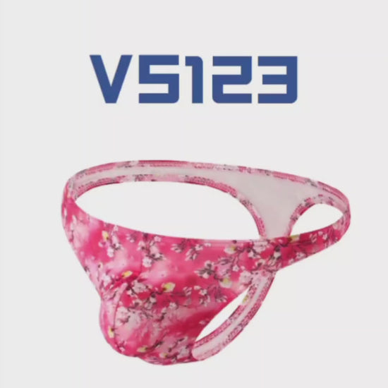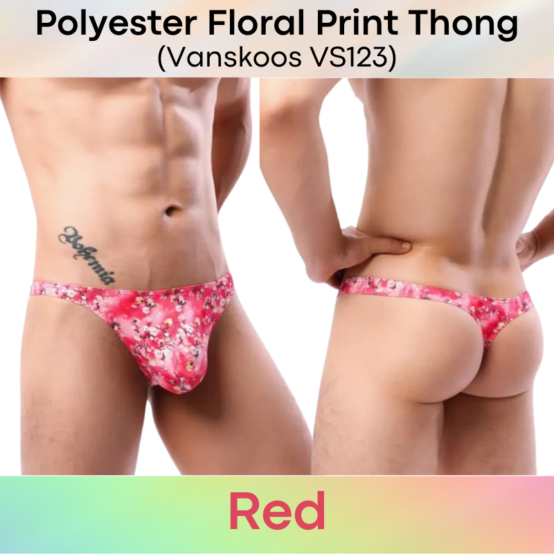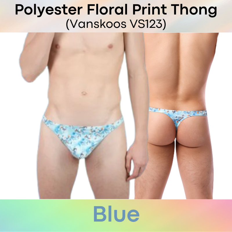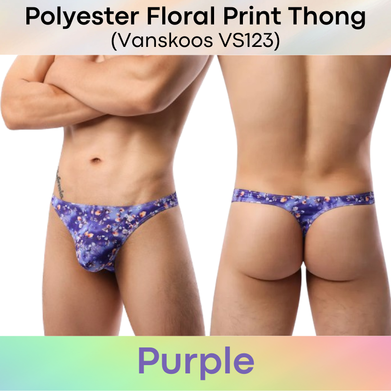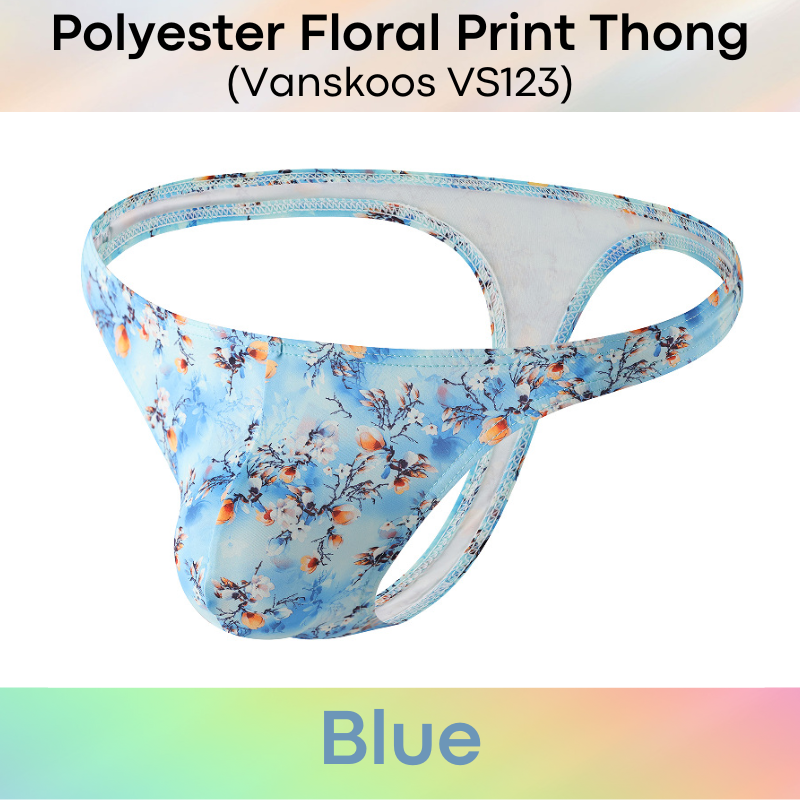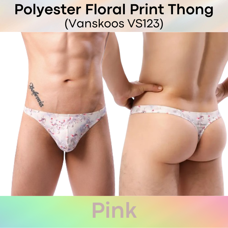 Made of polyester. Floral print design. Low waist. 3D convex pouch, great for down parkers. Sexy T back.