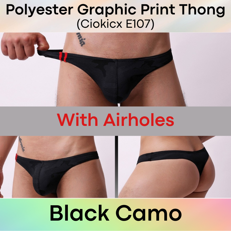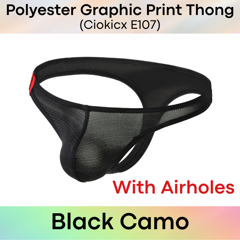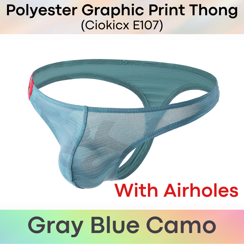 Made of polyester. 2 type of material: graphic print and with airholes. Low waist, bikini style. Great for down parkers.