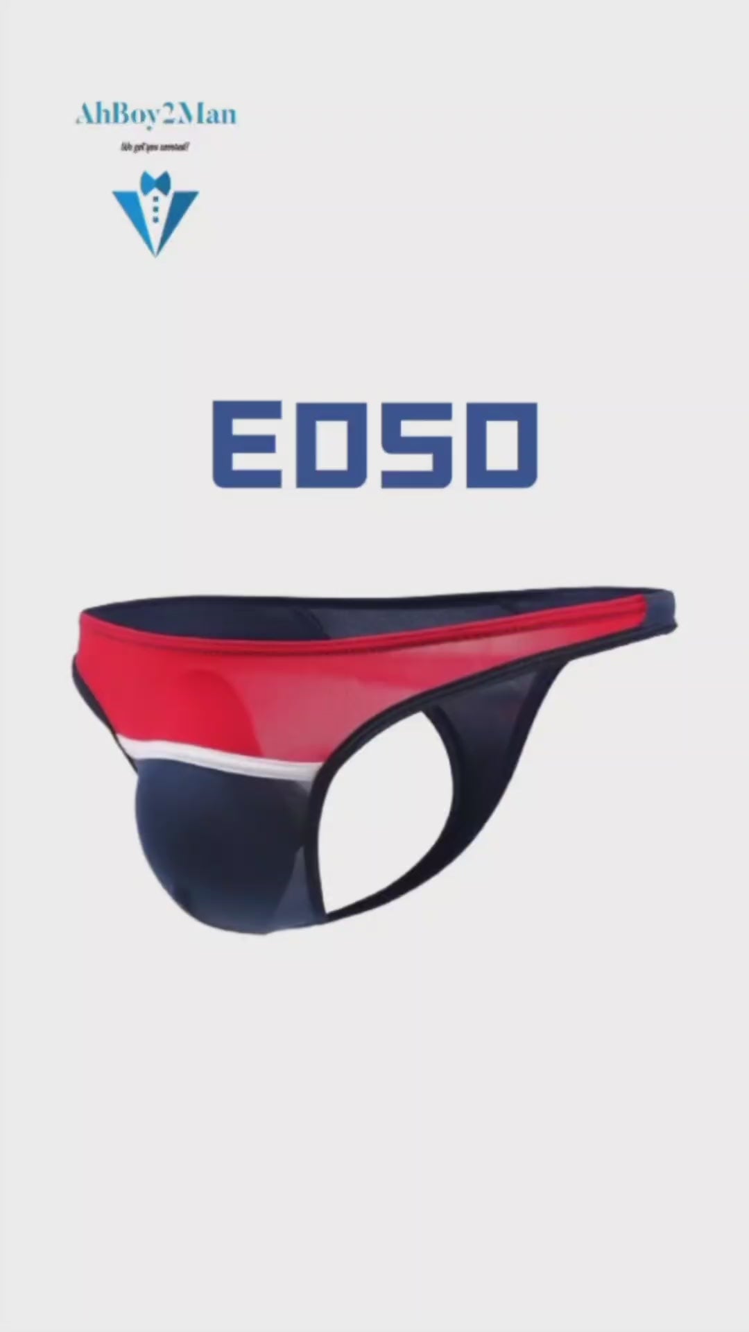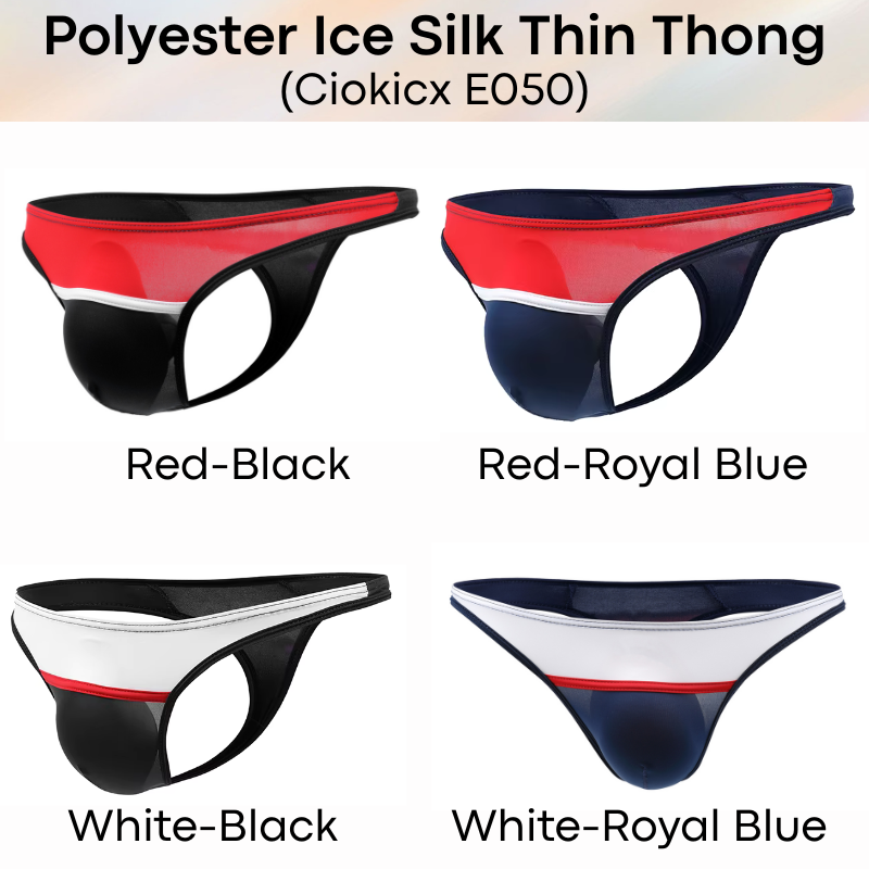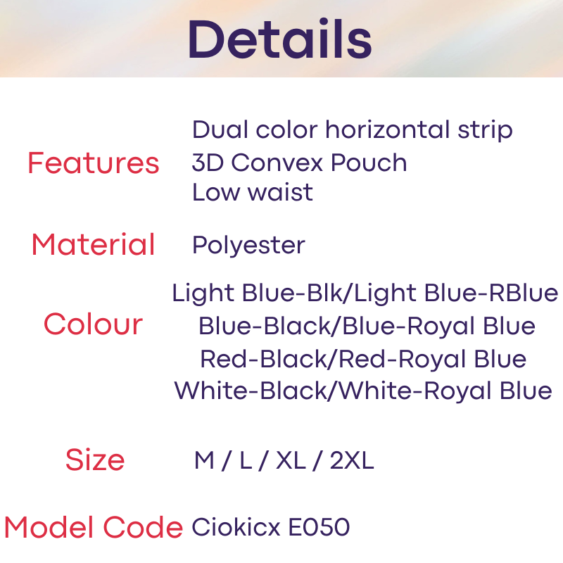 Made of polyester. 8 colors to choose from. 3D convex pouch to enhance your assets. Semi transluscent. Dual color horizontal strip.