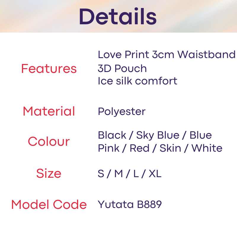 Made of polyester. Ice silk soft comfort. 3D pouch to show off your assets. 3cm waistband.