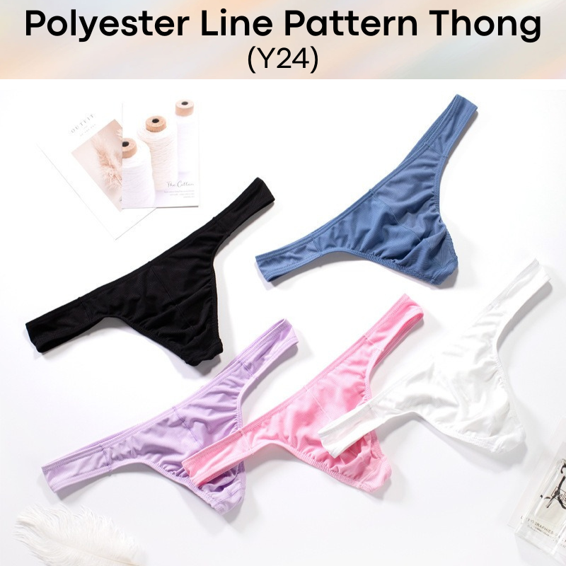 Made of polyester. Line pattern low waist thong. Breathability. Classic design.