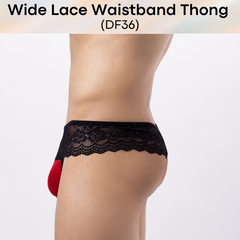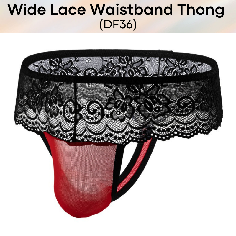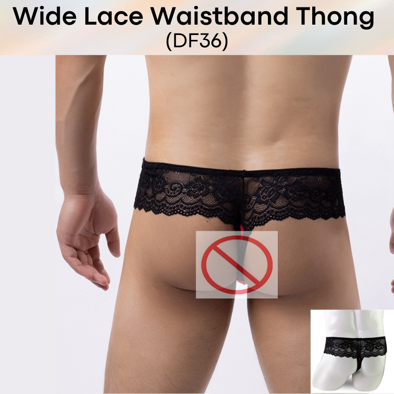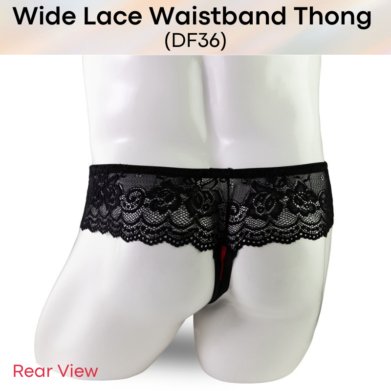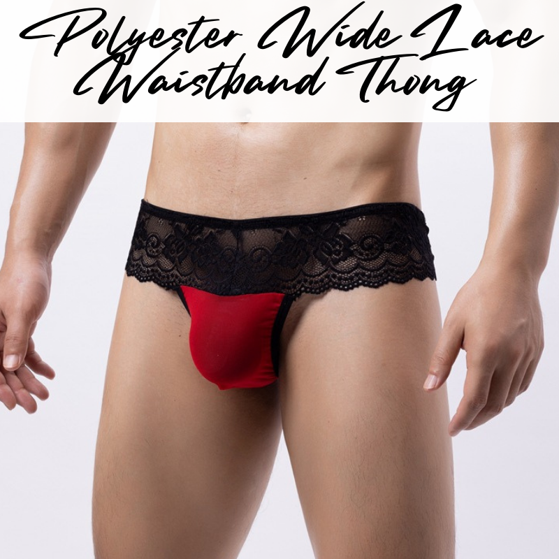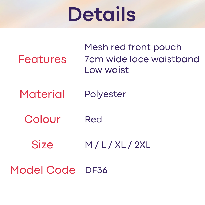 Made of polyester. Mesh front pouch. 7cm wide lace waistband.