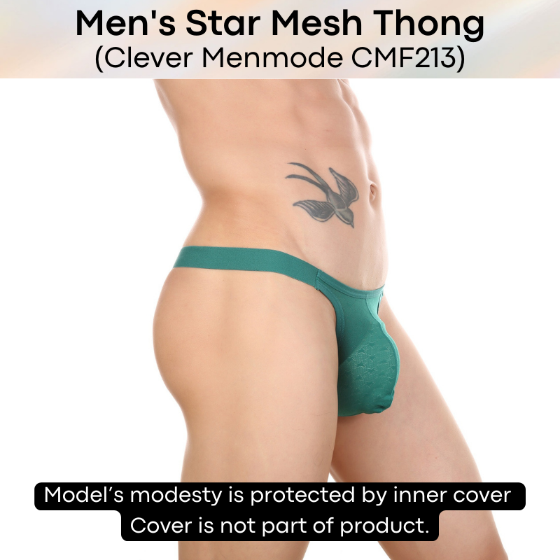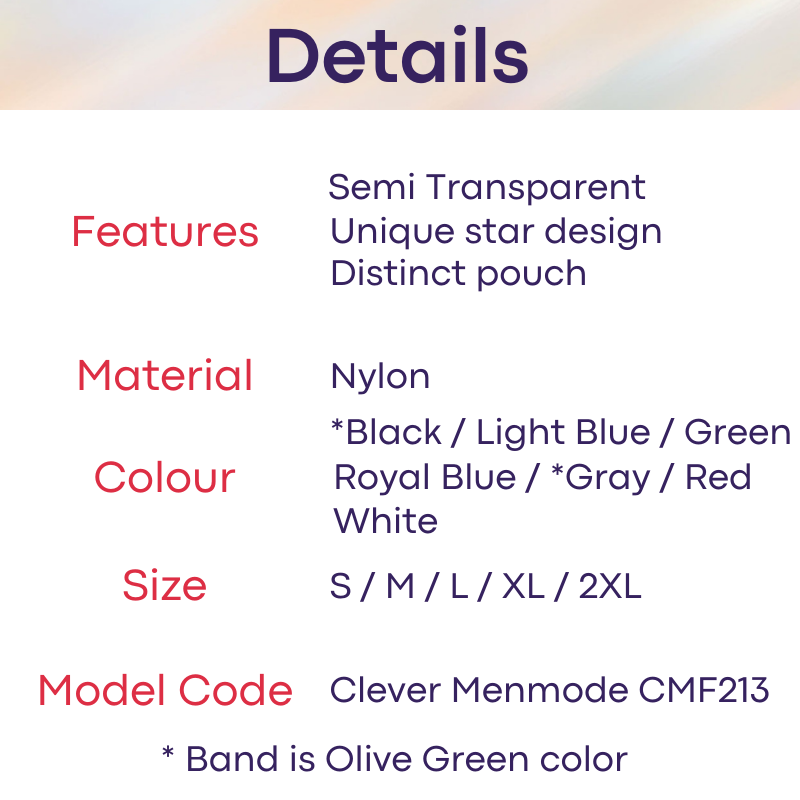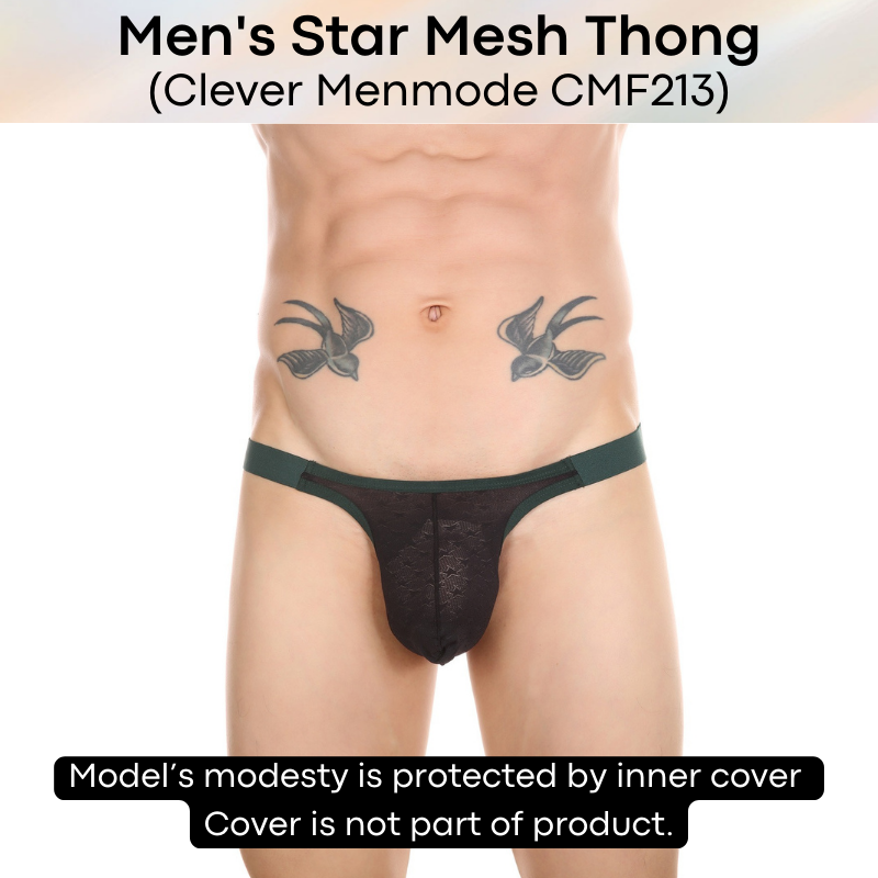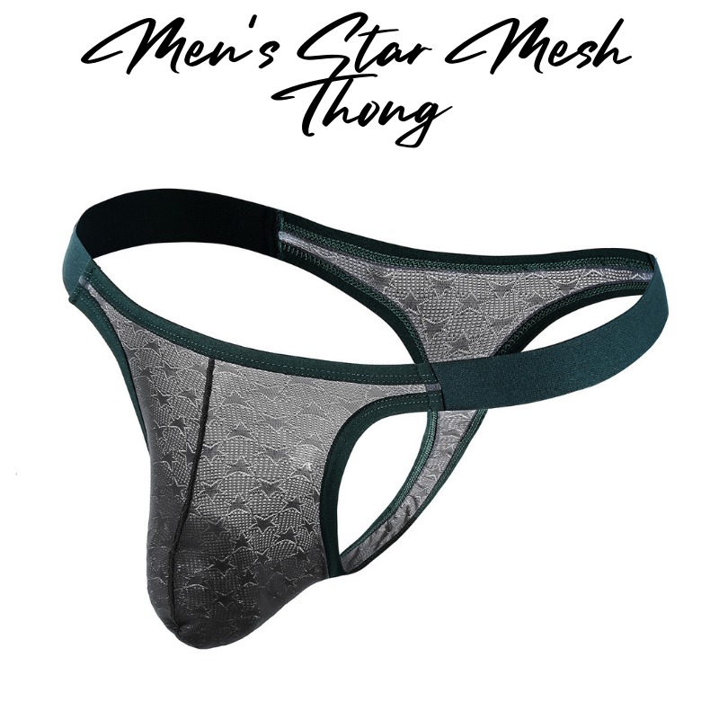 Made of nylon. Mesh star print pouch. Large pouch space, great especially for down parkers. Semi translucent, super sexy wear.