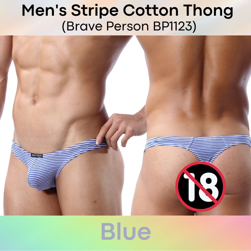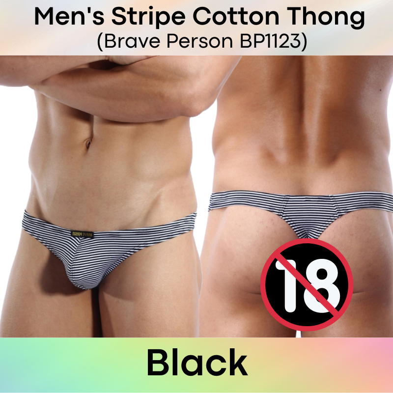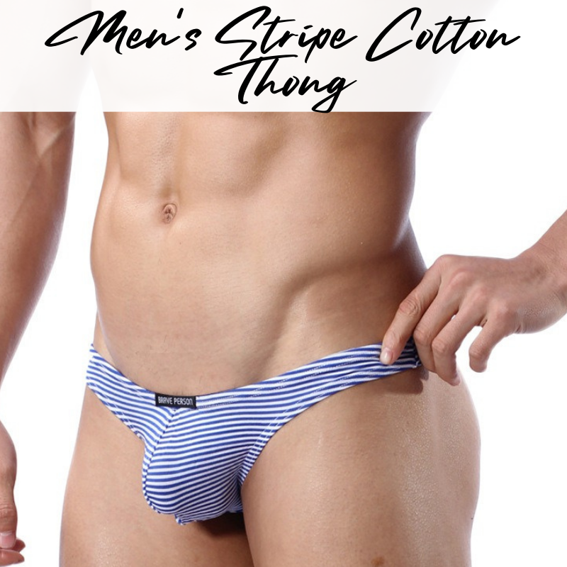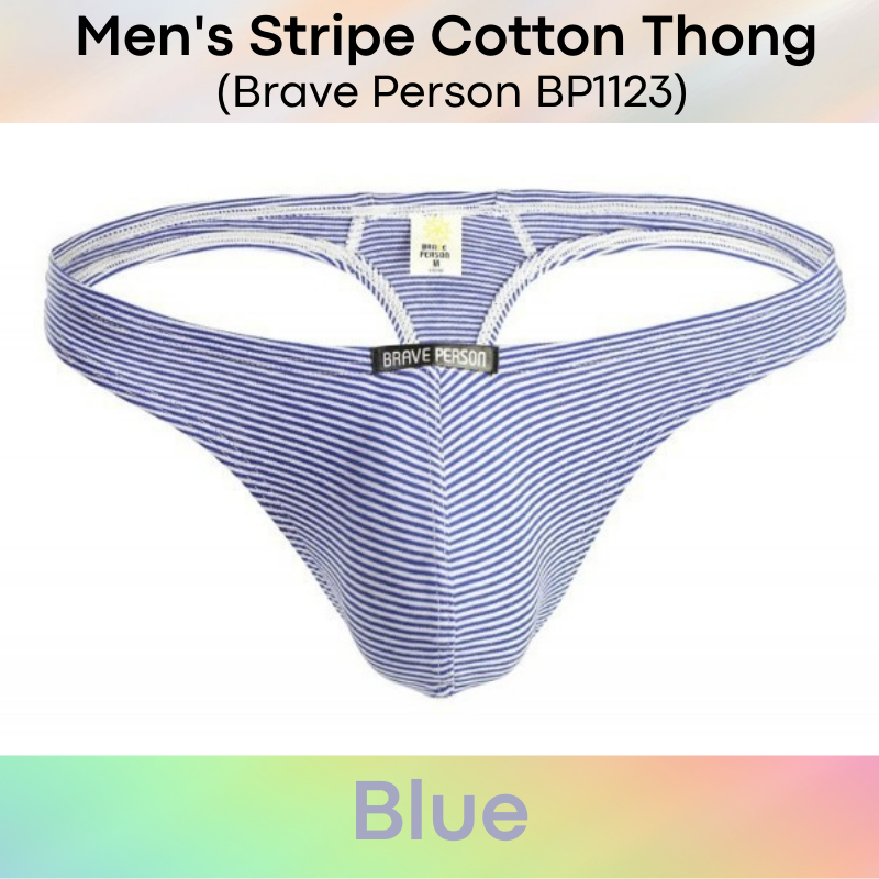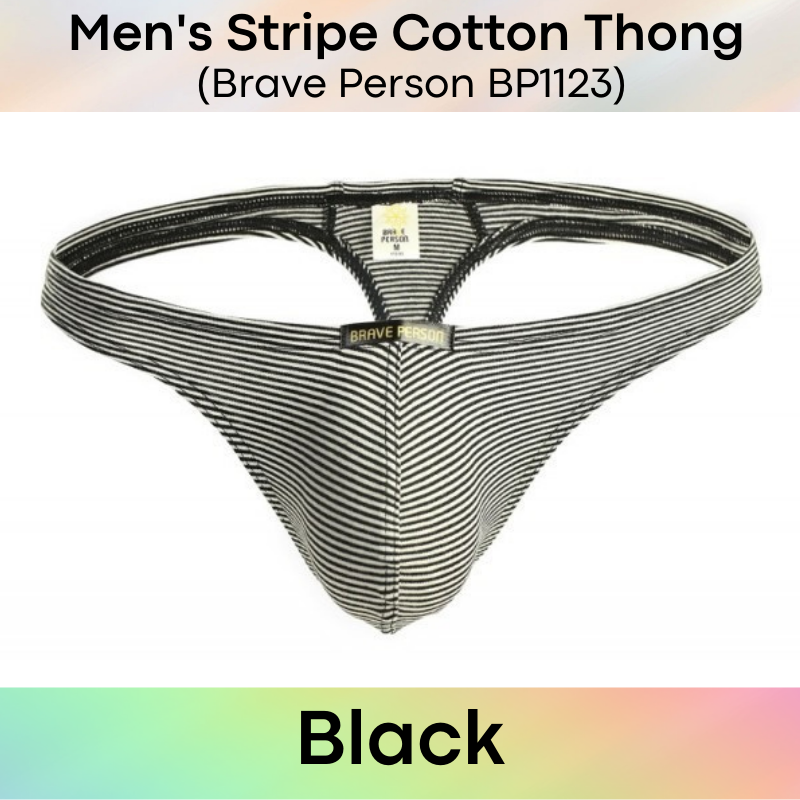 Men's Thong : Stripe Print Cotton Underwear (Brave Person BP1123)