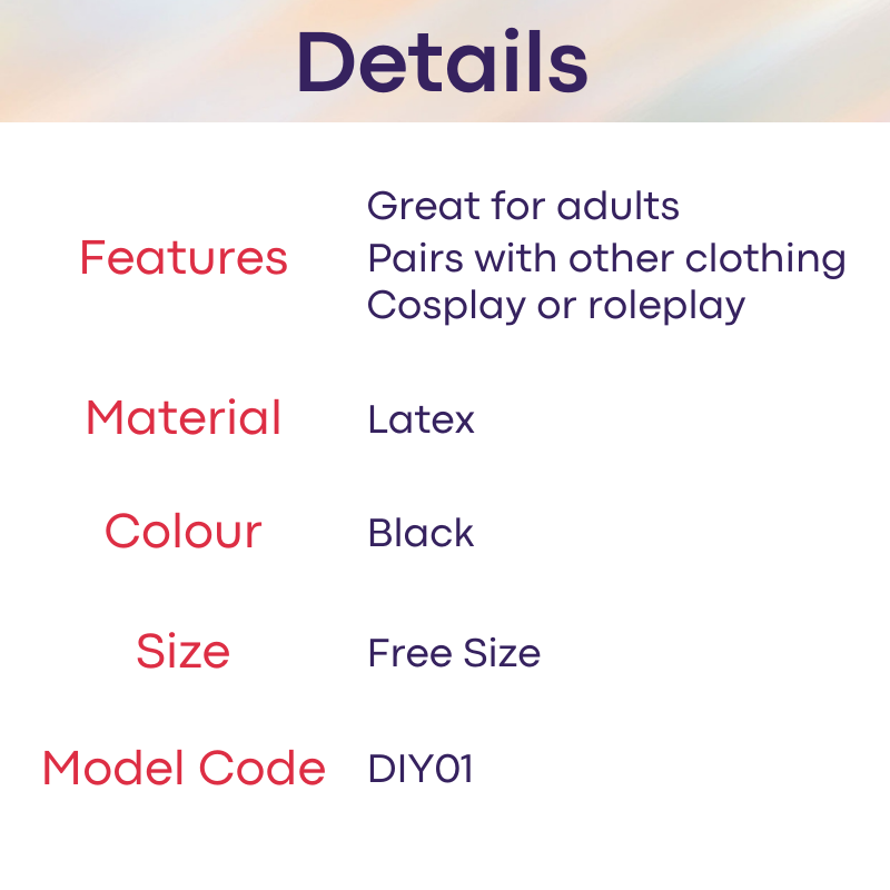 Made of latex. Whether for cosplay or roleplay, pair with sleek jackets and you are ready to zoom down AYE/CTE/ECP/KJE/PIE in your Batmobile. ERP Charges not included.
