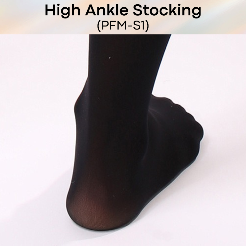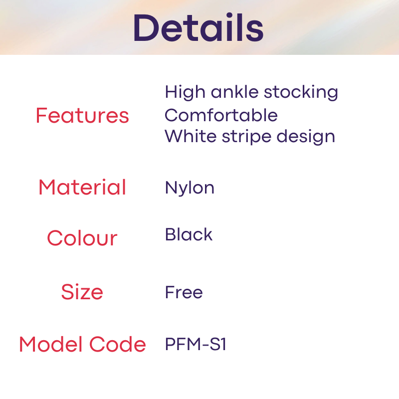 Made of nylon. High ankle stocking, with stylish white stripes.