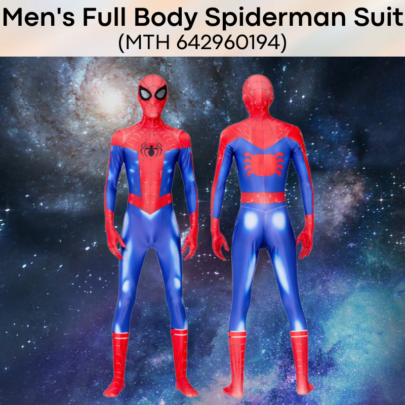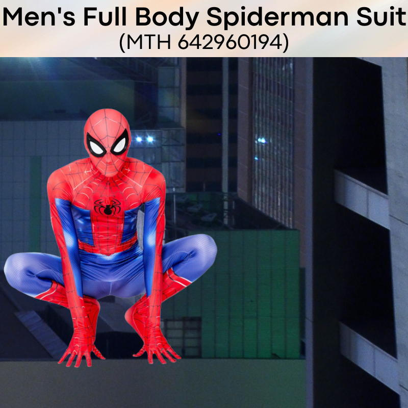 Made of spandax. Whether for cosplay or roleplay, get the complete Spiderman body suit, from head to fingers and to the toes. Web slingers not included.
