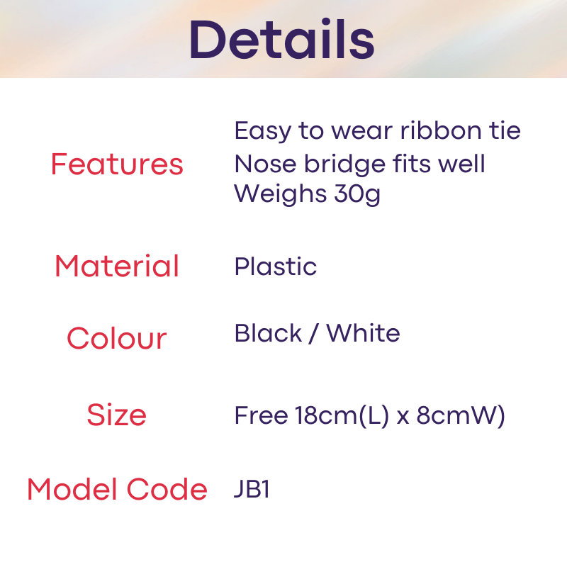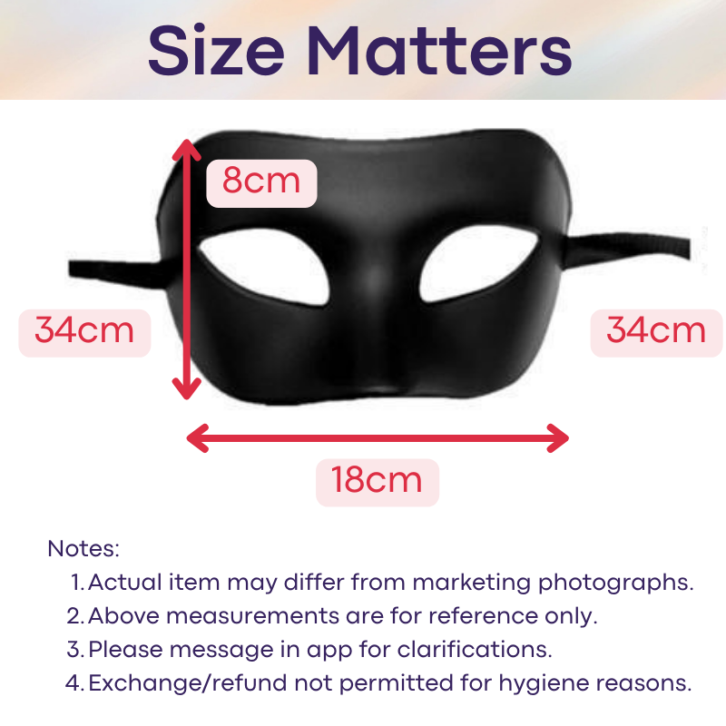 Made of plastic. Great for party or role play. 34cm each for left and right ribbons, easy to tie. Has a nose bridge which fits comfortably.