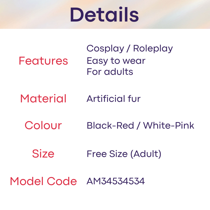 Made of artificial fur. Cute rabbit ear headband, whether for costume party or role play. Bendable ears. For adults only.